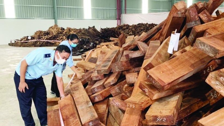 Gỗ nhập lậu qua cảng Cát Lái do cơ quan Hải quan phát hiện, bắt giữ. Ảnh: T.H