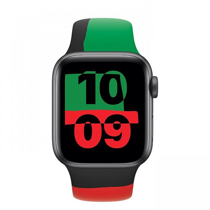 Apple mới đây đã cho ra mắt Apple Watch 6 của mình dưới phiên bản custom giới hạn tên gọi “Black Unity”. Thiết bị có hai kích thước 40mm, 44mm, đi kèm với dây đeo silicone pha trộn giữa ba gam màu đen, xanh lá cây và đỏ lấy cảm hứng từ lá cờ Pan-African.