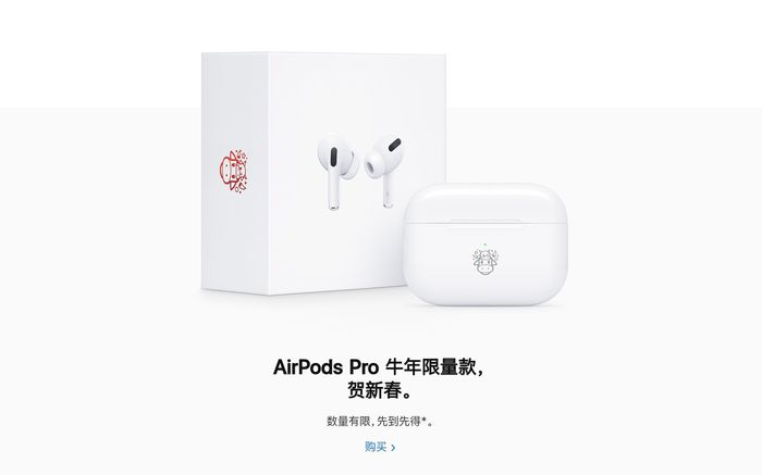 Để chào mừng Tết Nguyên Đán, Apple đã giới thiệu một cặp AirPods Pro phiên bản giới hạn dành cho một số nước đón Tết này như Trung Quốc, Hồng Kông, Singapore, Đài Loan, Malaysia và Việt Nam. Năm mới sắp tới là năm Kỷ Sửu và Apple đã tạo ra một biểu tượng đáng yêu để kỷ niệm dịp đặc biệt này.
