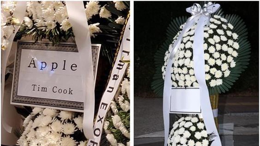 Vòng hoa chia buồn Tim Cook, CEO Apple, gửi tới lễ tang Cố Chủ tịch Samsung. Ảnh: Business Korea