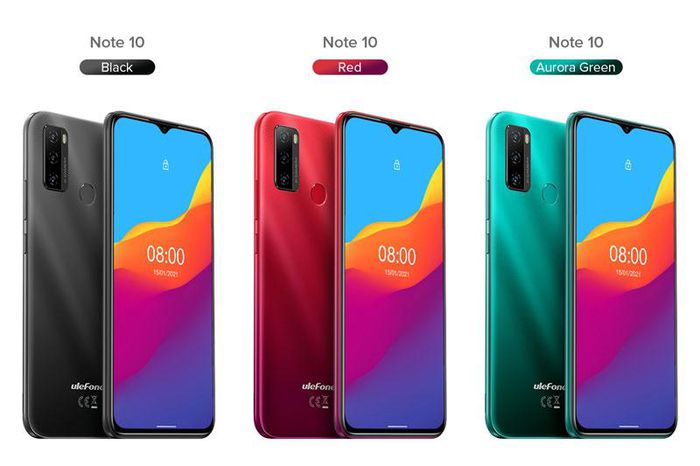 Ulefone Note 10 có 3 tùy chọn màu sắc gồm đen, đỏ và xanh Aurora. Giá bán của máy chỉ 110 USD (tương đương 2,55 triệu đồng).