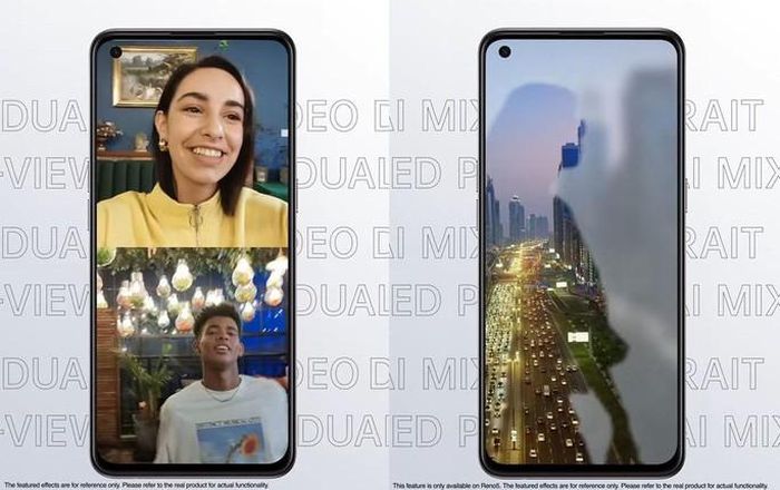 Hai tính năng Video hiển thị kép (Dual View Video) và Video phơi sáng kép (AI Mixed Portrait) trên 1 dòng smartphone Ảnh: Nhà sản xuất cung cấp