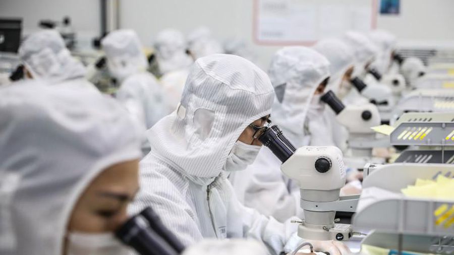 Công nhân sản xuất chip LED tại một nhà máy ở tỉnh Giang Tô, miền Đông Trung Quốc