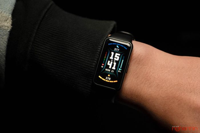 Cụ thể, Honor Band 6 có màn hình AMOLED 1,47 inch, viền rất mỏng, kích thước này cũng là lớn nhất trên thị trường vòng đeo tay hiện nay. Nhược điểm màn hình nhỏ trên vòng đeo tay như khó thao tác, thường chạm nhầm, thao tác không thoải mái đã được khắc phục trên Band 6. Chất lượng hiển thị cũng không phải lo lắng, ngang bằng với những smartwatch hàng đầu hiện nay về màu sắc, chỉ kém hơn một chút về độ phân giải. Mặc dù màn hình khá lớn nhưng cảm giác đeo không bị khó chịu quá nhiều so với vòng đeo tay thông thường, màn hình hơi cong nhẹ để ôm tay hơn.