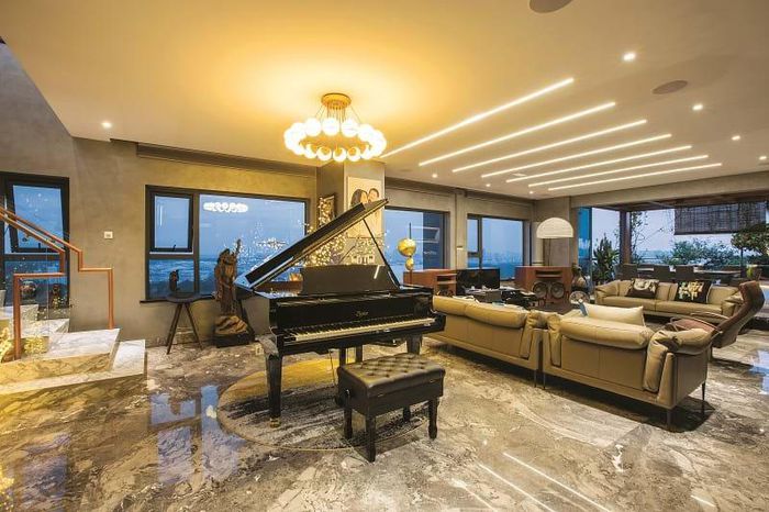 Với hơn 300m2 diện tích tích sàn, trong đó diện tích ở tầng 26 là 110m2, tầng 27 là 212m2 và gần một phần ba không gian của căn hộ được ưu tiên dành làm sân vườn. Khoảng sân vườn này không chỉ có cây xanh, cảnh quan mà còn có cả bếp phụ ngoài trời và những tiện ích khác. Nơi đây có thể là địa điểm để sinh hoạt gia đình, tiếp khách, thư giãn, tổ chức những buổi tiệc cùng bạn bè…