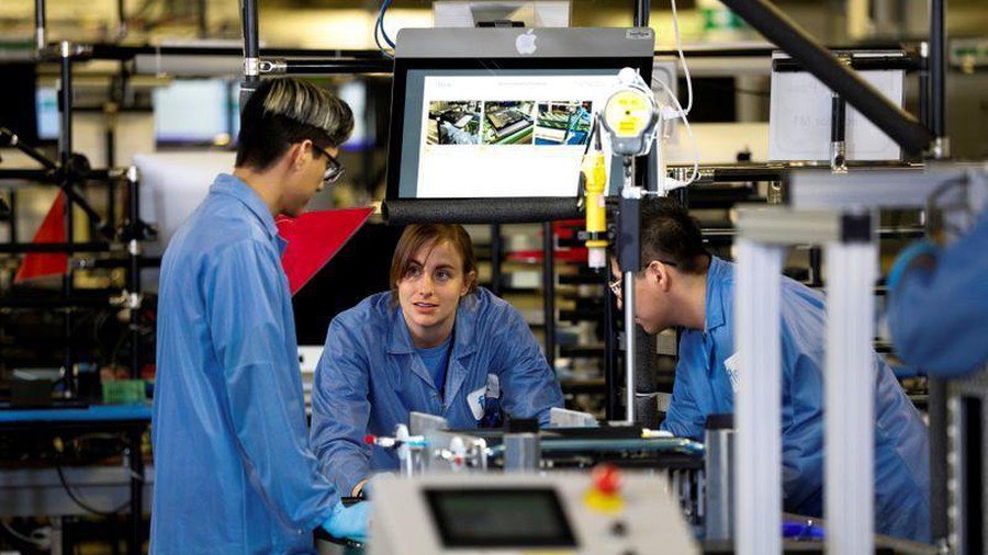 Nhân viên nhà máy lắp ráp Apple Mac Pro tại Austin, Mỹ ngày 20/11/2019. Ảnh: Reuters