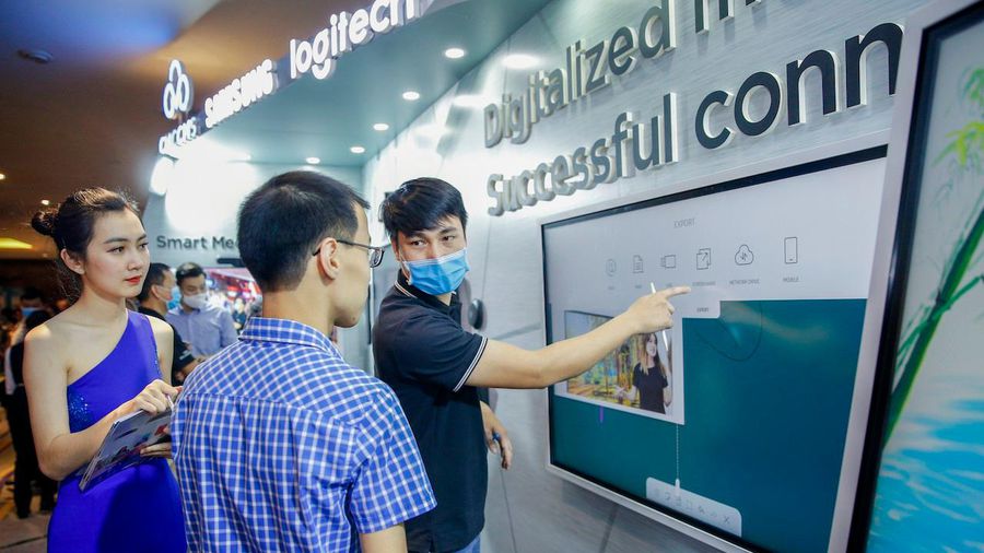 Samsung đã mang đến giải pháp cho số hóa doanh nghiệp, họp trực tuyến trong ngày hội Chuyển đổi số Việt Nam 2020 bằng những sản phẩm cụ thể, như sự kết hợp giữa các màn hình cao cấp của Samsung và Camera Logitech, màn hình tương tác Samsung Flip 2, màn hình hiển thị chất lượng cao Smart Signage…