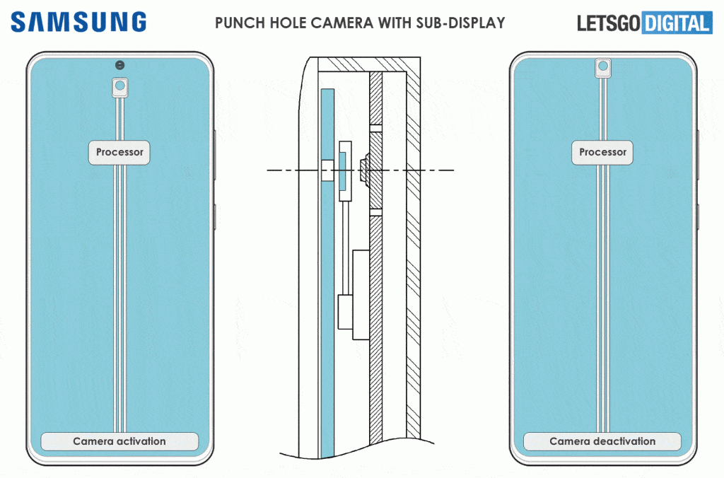 Samsung Electronics đã nộp đơn lên WIPO (Văn phòng Sở hữu Trí tuệ Thế giới) để được cấp bằng sáng chế có tiêu đề “Electronic Equipment Including Sub-Displays and Operating Methods”. Mô tả một điện thoại di động với camera trước có thể được ẩn bằng cách chuyển lớp màn hình. Quá trình thẩm định đã hoàn thành và chỉ chờ đợi để công bố rộng rãi vào ngày 24 tháng 12. Tài liệu cho thấy màn hình của mẫu điện thoại này cũng hỗ trợ việc sử dụng bút S Pen.
