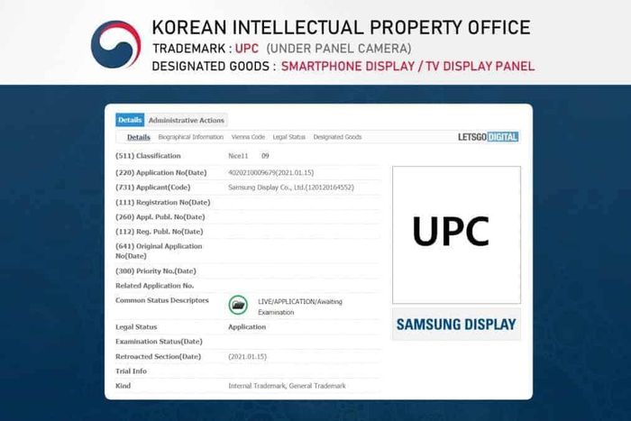Bằng sáng chế với tiêu đề “Camera ẩn dưới màn hình” thuộc Văn phòng Sở hữu trí tuệ Hàn Quốc (KIPO) có trụ sở tại Seoul.
