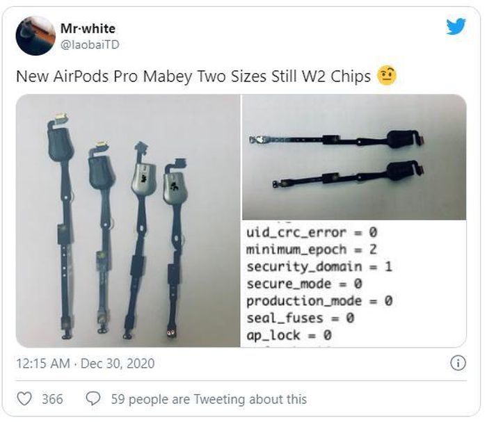 Dòng Tweet tiết lộ bộ phận của AirPods Pro 2. Ảnh: BGR.