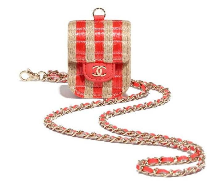 1. Chanel Raffia-blend AirPods: Không chỉ trang phục hàng hiệu, các tín đồ thời trang và hội con nhà giàu còn đầu tư vào những món phụ kiện nhỏ nhắn như bọc AirPods. Bắt kịp xu hướng, Chanel cho ra mắt nhiều thiết kế bọc tai nghe không dây với kiểu dáng giống túi xách hàng hiệu. Trong đó, Chanel Raffia-blend khá được yêu thích. Nó có giá 1.430 USD.