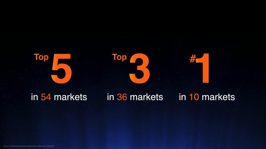 Năm 2020 là một năm thành công lớn của Xiaomi khi thương hiệu này gia tăng đáng kể thị phần ở rất nhiều thị trường. Theo công bố từ hãng, Xiaomi đứng số 1 tại 10 thị trường, đứng TOP 3 tại 36 thị trường khác trên toàn cầu. Đồng thời, cũng là thương hiệu tăng trưởng nhanh nhất ở phân khúc cao cấp với 3639% (tính từ 500 USD trở lên).